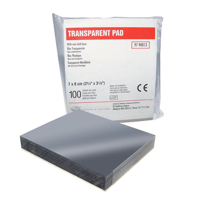 Transparant Mixing Pads are ideal for mixing of all types of cements. The transparant background allows you to SEE exactly how well the powder and the liquid are being mixed. So a better mixed cement will give a stronger fitting of the restorations. Non skid back.