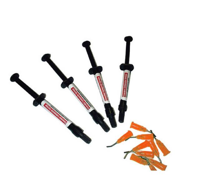 DE Healthcare Flowable Microhybrid is a Light Cured Microhybrid anterior and posterior filling material. Vita shaded. Small particle size provides strength and good aesthetics. Does not stick to instruments, condenses easily and can be carved. Syringes are available in 6 shades as well as universal opaque. Kit also contains 1x flowable composite, 1 x pit & fissure sealant, 1 x bond, 1 x etchant and application accessories.
