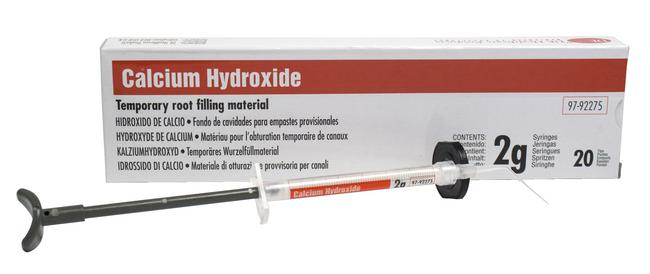 Calcium Hydroxide is a water soluble temporary root canal filling material. Composition:Calcium hydroxide (30%),barium sulphate (35%) and polypropylene glycol (35%). Application fields: Partial pulpotomy, apexification, temporary filling material for an infected root canal, especially in cases of exudation. It is radioopaque, easy to handle and to deliver to the propper place due to the tips.