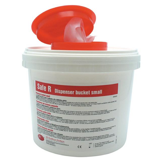 Safe R Bucket dispenser system, size: 32 x 30 cm, empty bucket and refill non woven cleaning wipes available. Bucket can be filled with any kind of listed surface disinfection