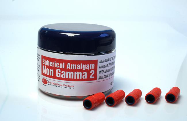Amalgam SPHERICAL, non gamma II. CONTENTS: Ag 60%, Sn 28%, Cu 12%. WORKING TIME:Condense 2 -3.5 min. Band removal, carving and burnishing 3.5 -7 min. Polish 24hr after placement. Capsules(Self Activated):?1spill 400 mg alloy 290mg mercury.