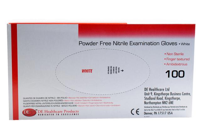 Powderfree Nitrile, 3mil., finger textured, white, X-Small
