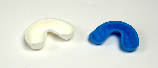 Styrofoam trays for the application of fluoride gel. 3 different sizes, they are applicable for upper and lower jaw. Each package contains 100 trays (white & blue)