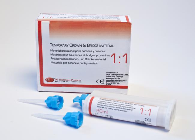 Temporary Crown & Bridge material is a fluorescent cold polymerising paste-paste system for the production of temporary crowns, bridges, inlays and onlays. Temporary Crown & Bridge material consists of base paste and catalyst paste.