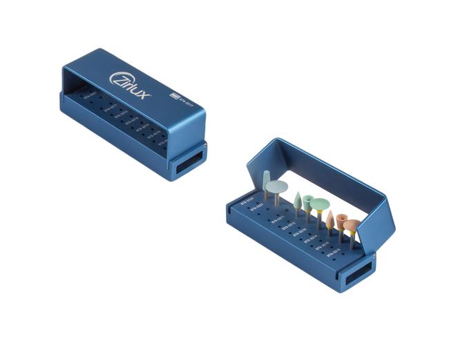 Zirlux finishing and polishing kit RA designed for Lab & office use. Diamond polishers and trimmers interspersed with diamond grit for adapting and correcting CAD/CAM restorations Trimmers HP - Speed 5000-10000 per minute. Polishers HP - Speed 7000-12000 per minute. Starter Kit with 9 pcs, Refills: 1 pc each