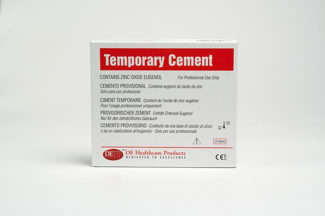 Temporary cement - used for cementation of Temporary Crown & Bridges or tempory cementation of final restaurations. Contains eugenol. Easy to mix and manipulate, Short oral setting time. Kit contains 1 base and 1 catalyst. Now also available in a Eugenol free formulation