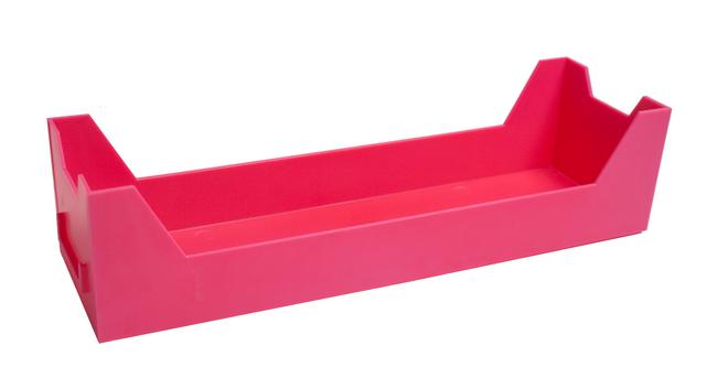Lab model tray without handle in pink color. Stackable. With label field. Holds 5 pairs of models. Size: (L x B x H): 310 x 92 x 77 mm. Material: PS